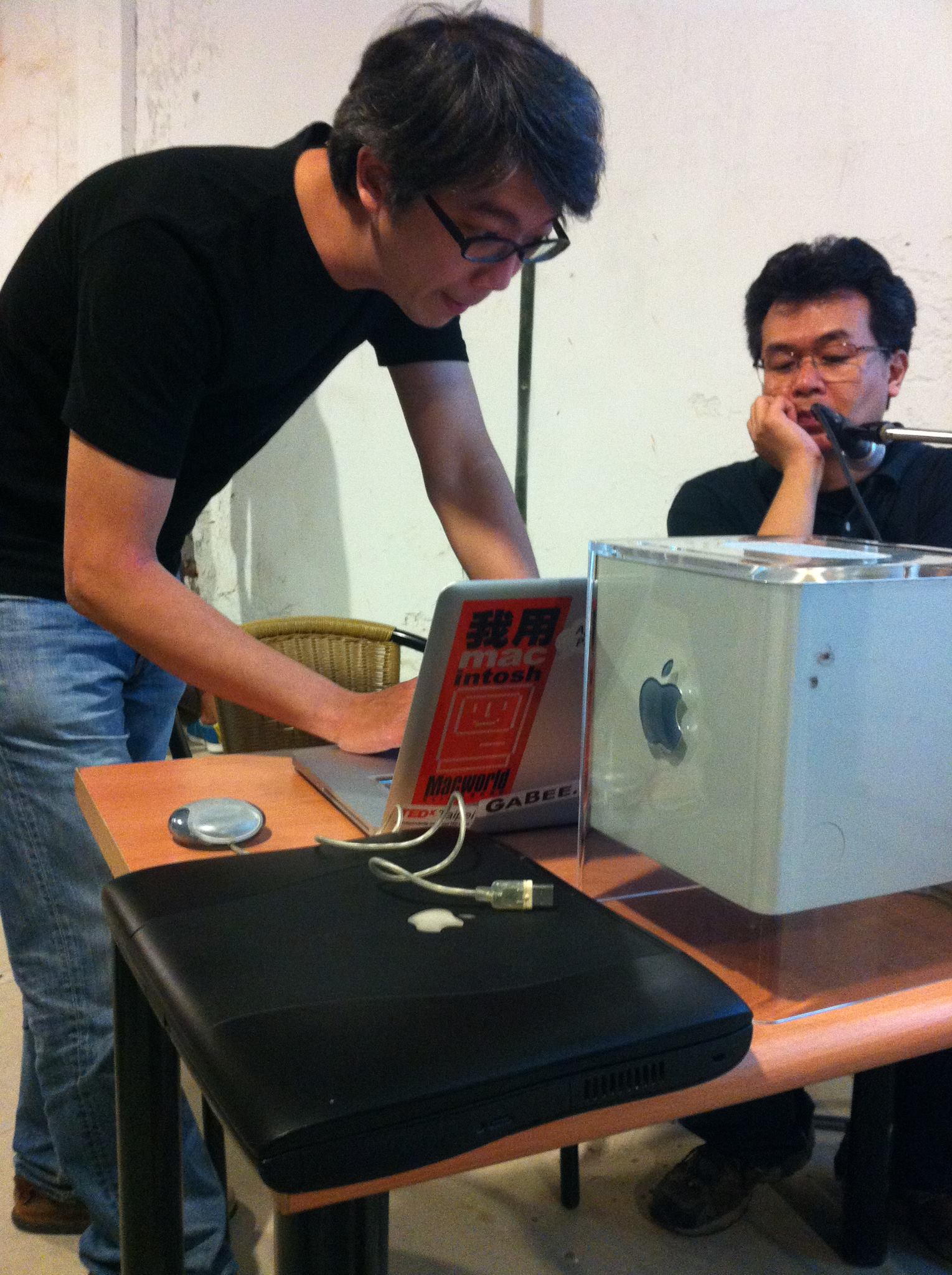 於是老地方冰果室的朋友們決定在既定的座談後面,加上特別場來悼念 Steve Jobs,所以我跟幾位朋友就一起分享了在 Steve Jobs 的年代中,我們最喜歡的設備,這天我帶了 Apple Cube G4 跟我的第一台筆電 Pismo 過去分享。