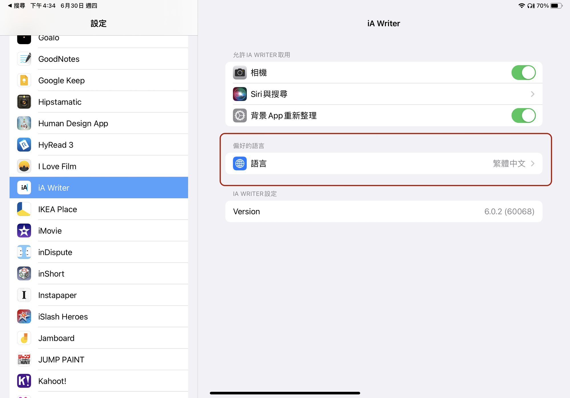 如果有需要調整語言的 App,可以前往設定 app > 往下捲到你想要修改的 App,在裡面修改特定語言。