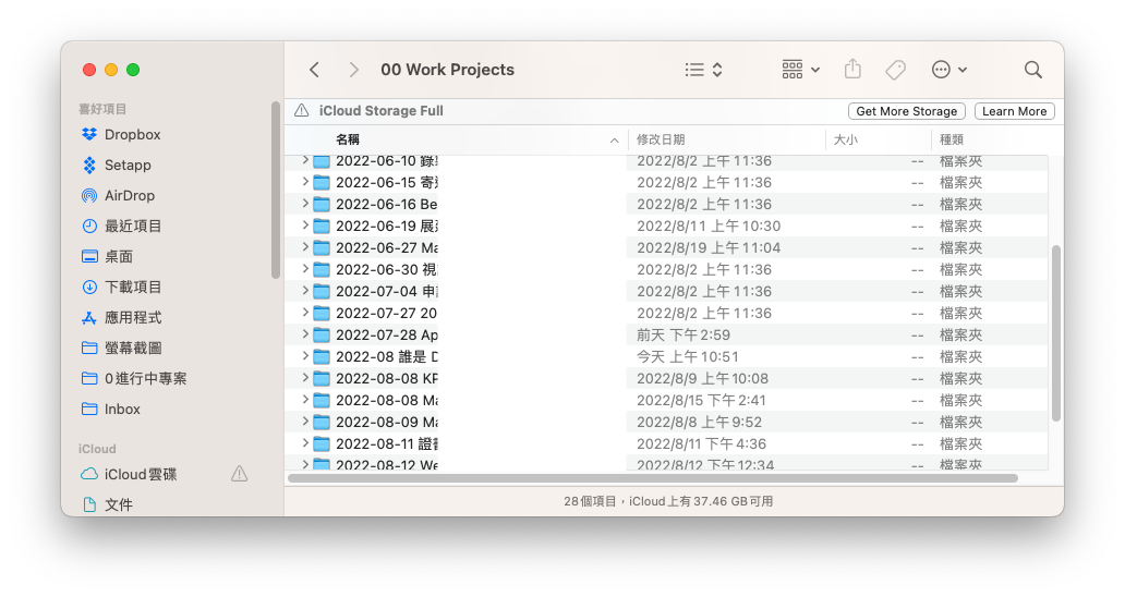 我也是在這三四年間才開始在意檔案管理這件事,現在是萬一要建立任何文件,都會建立專屬檔案夾,並標注日期,可是像我這樣容易分心的人,我發現一旦我想去確認今天日期,又要打出同樣格式得焦慮很多,讓我能無腦完成才是可以持之以恆的方式,目前我的檔案夾大約看來像是這樣。